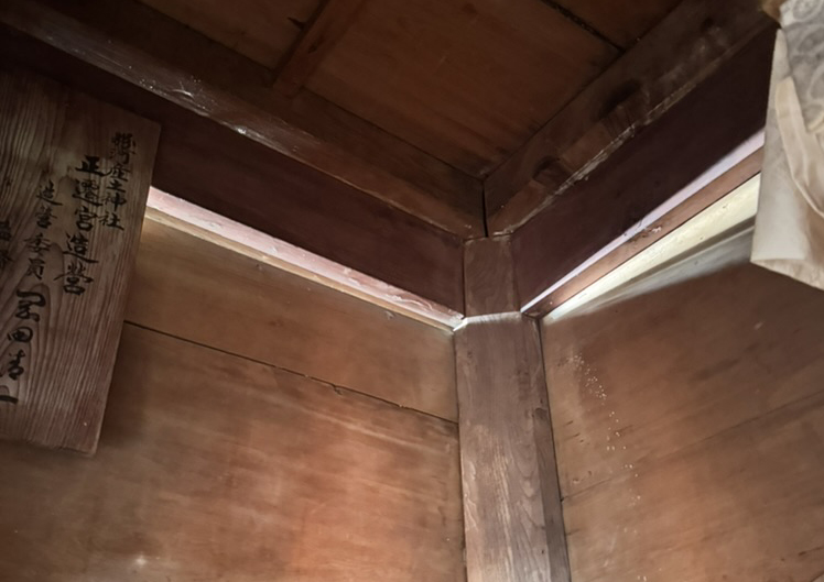 前回の平成7年正遷宮では、本殿や拝殿が入る御垣内や拝殿などを含む全敷地内の整備を行いました。 しかし30数年が経過し、塗装の剥離や劣化、雨漏りなど至る所に不具合が生じてまいりました。 つきましては新たに美観を備えるために令和12年正遷宮事業を発願し、皆様にご寄進を賜りたく、お願い申し上げる次第でございます。